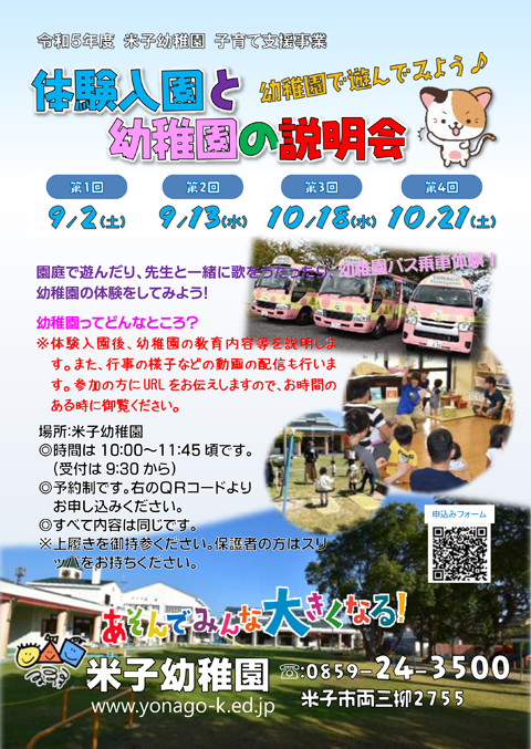 米子幼稚園 令和5年度園児募集開始しました。