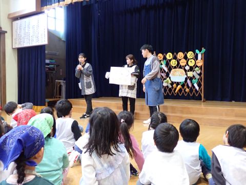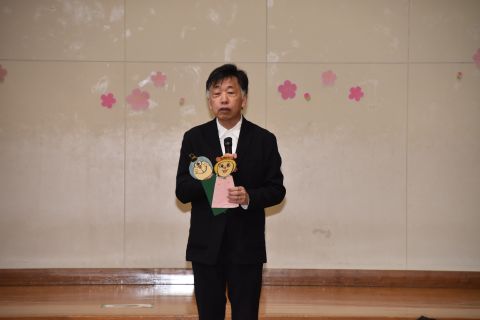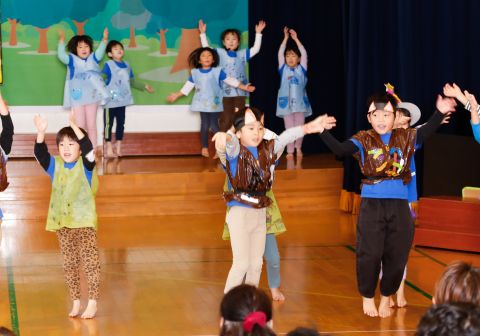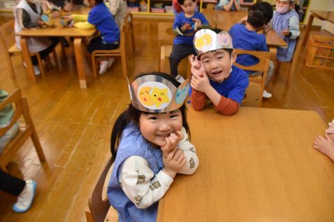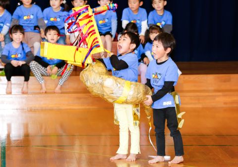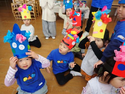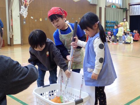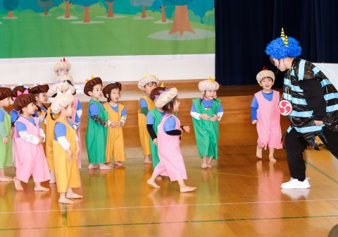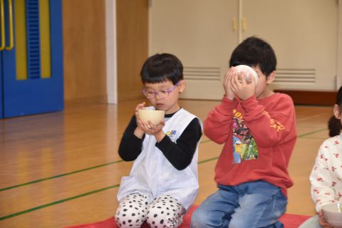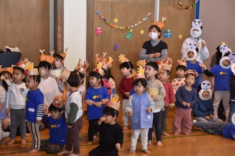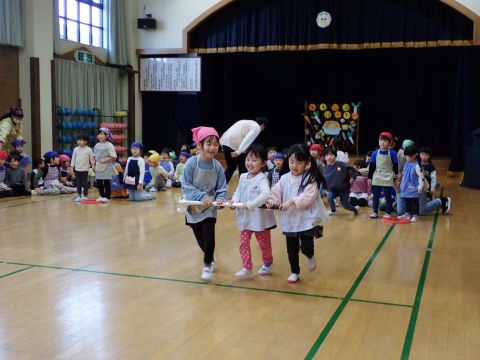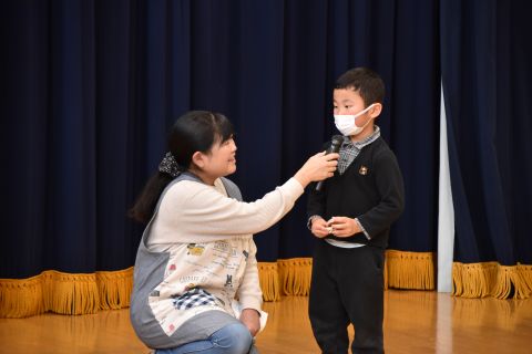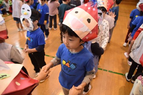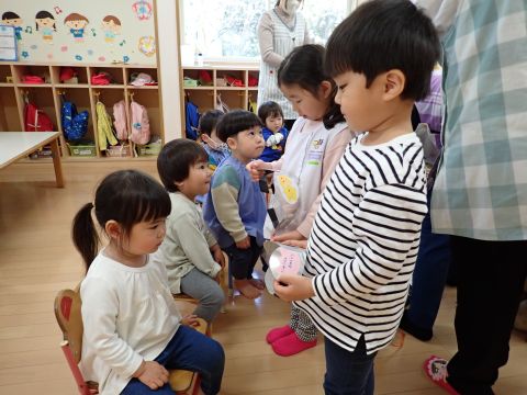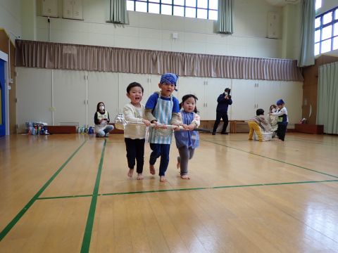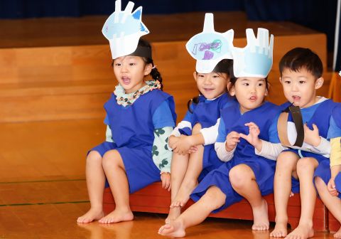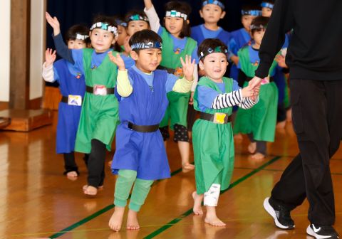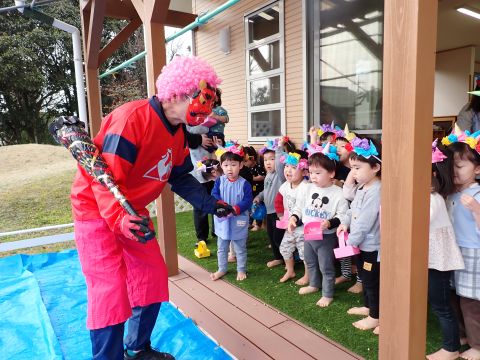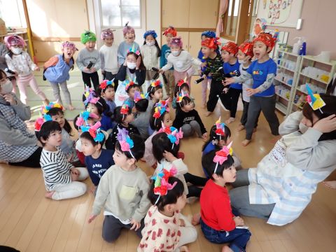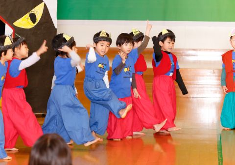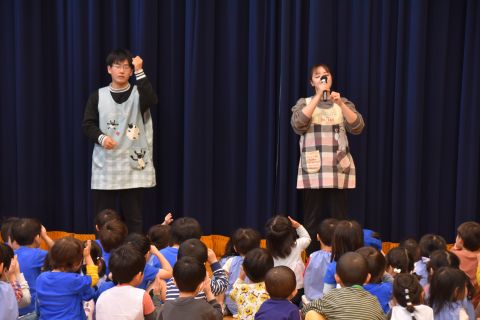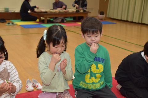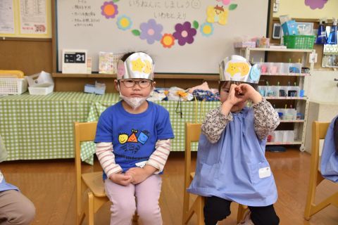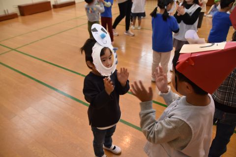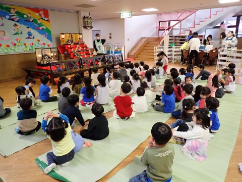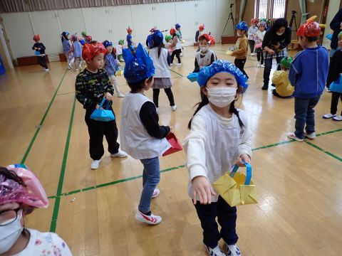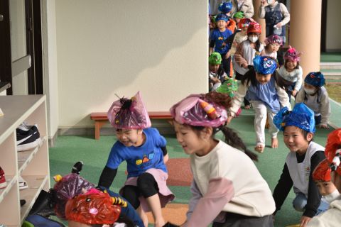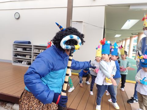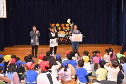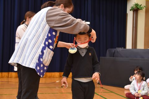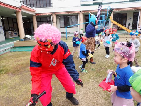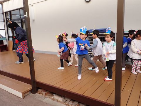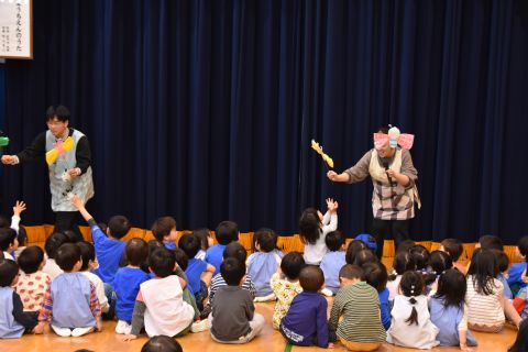 その後、園長先生から豆まきの由来の話を聞いたり、寸劇を観て楽しみました。