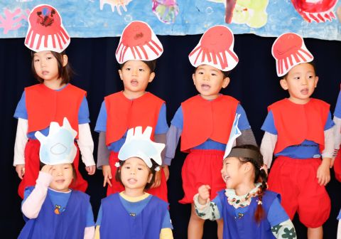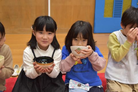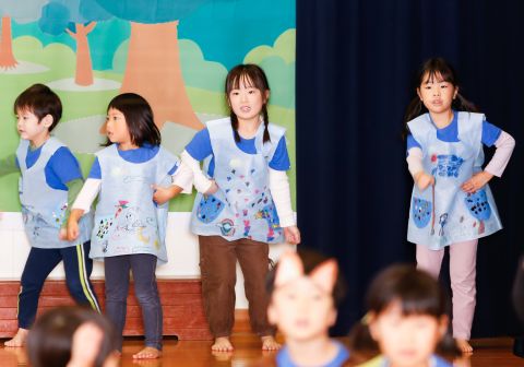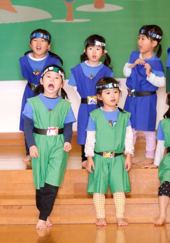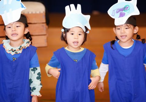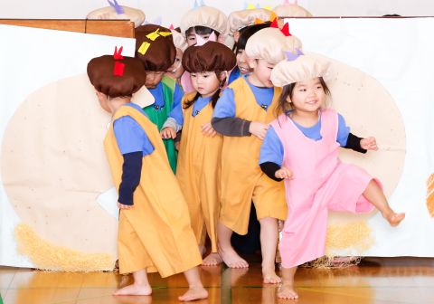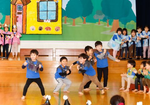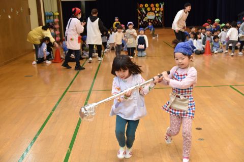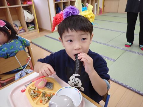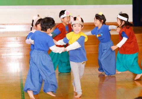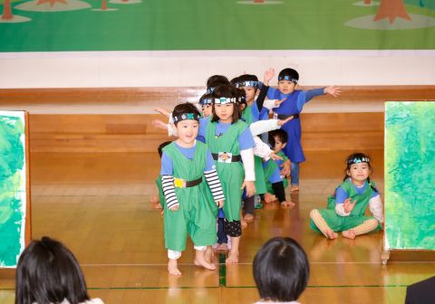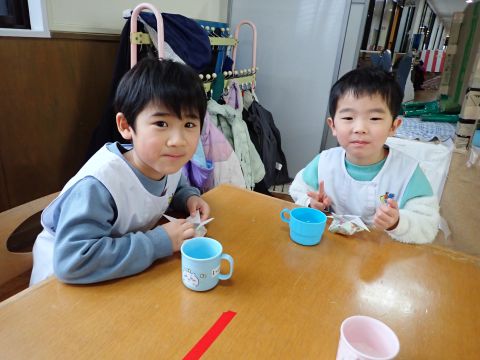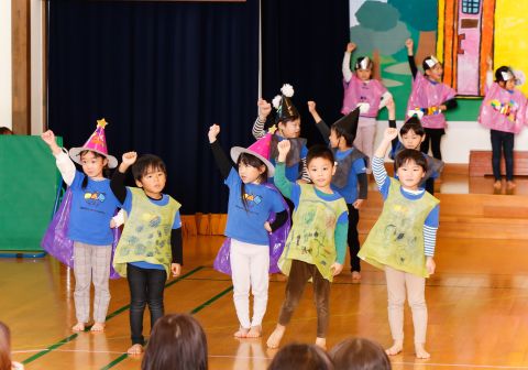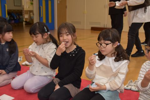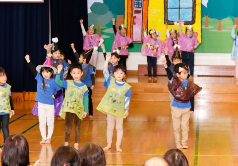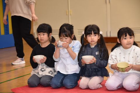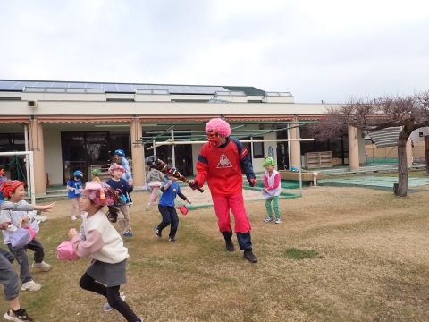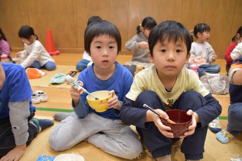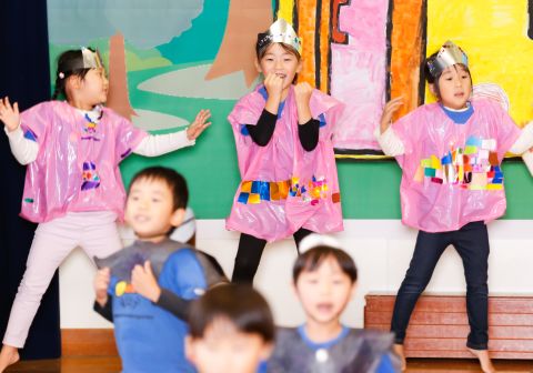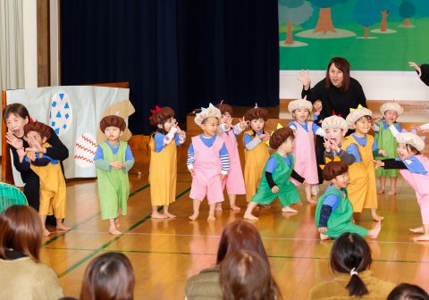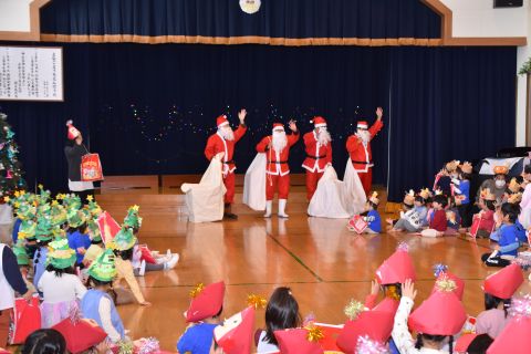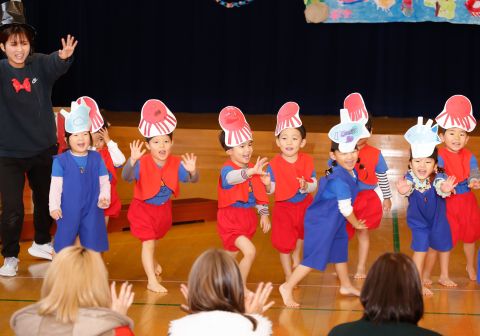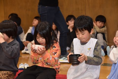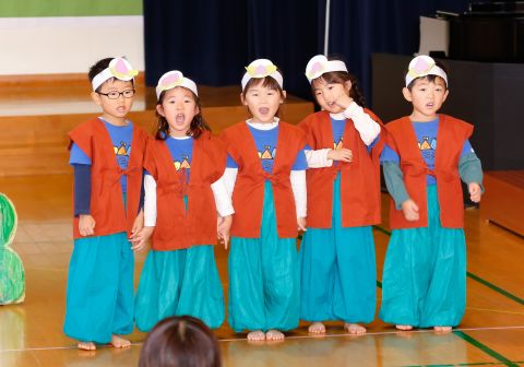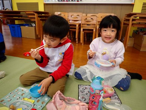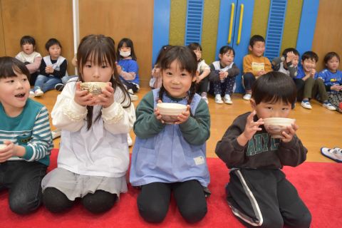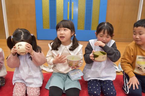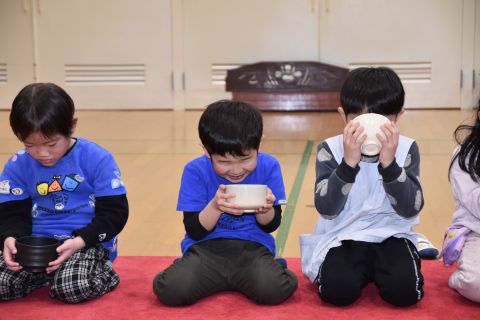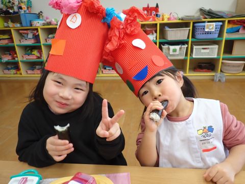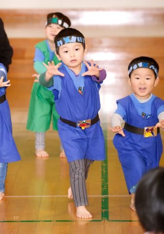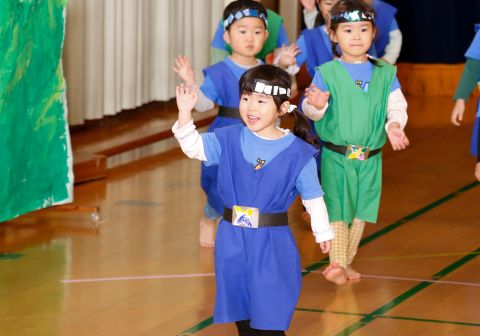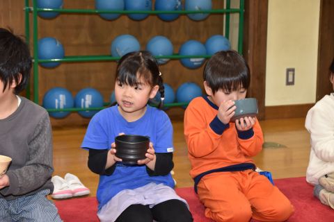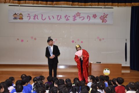 その後、園長先生から豆まきの由来の話を聞いたり、寸劇を観て楽しみました。