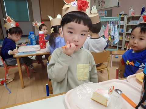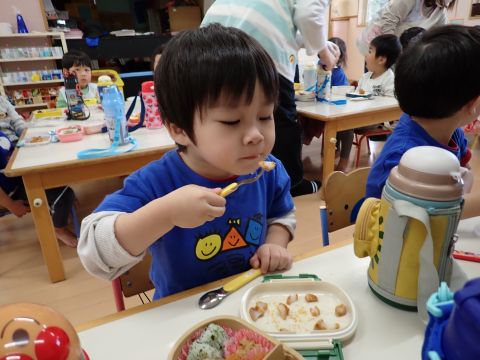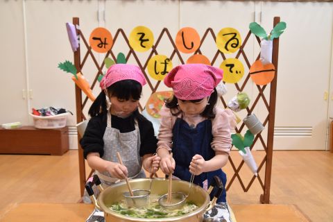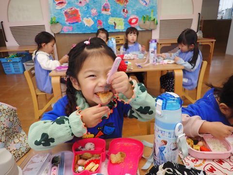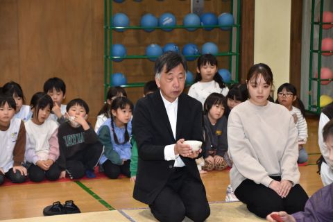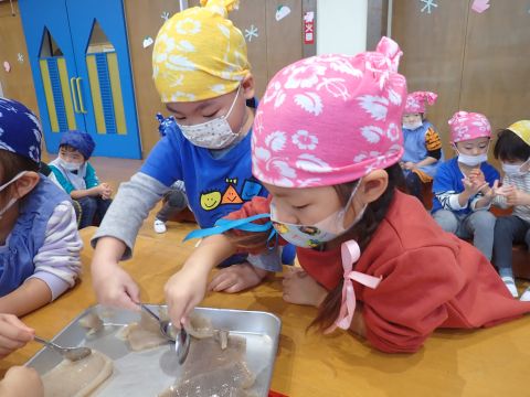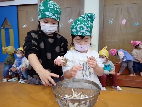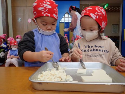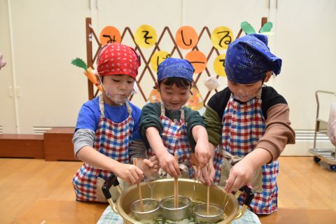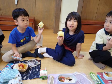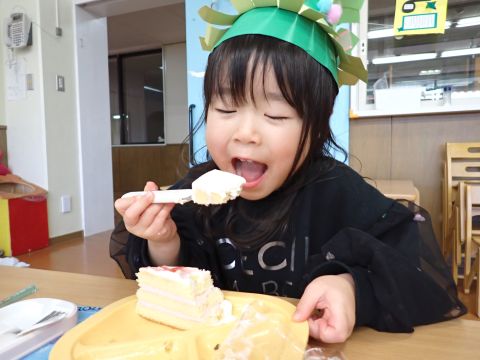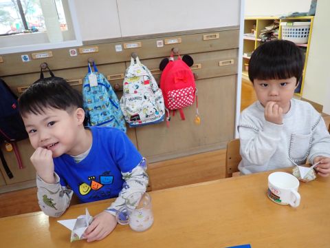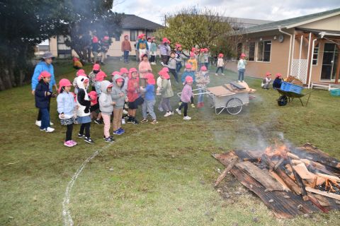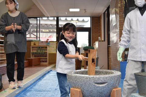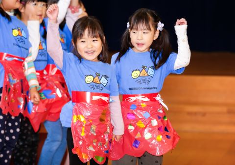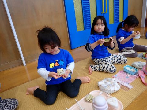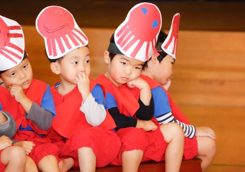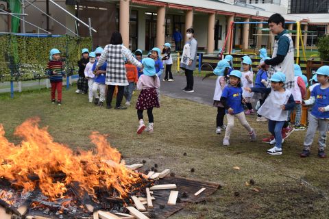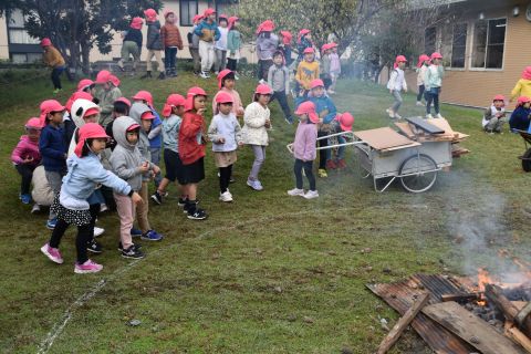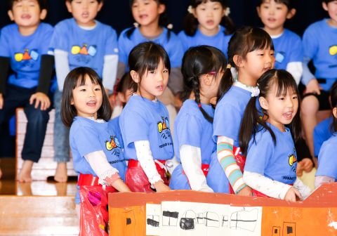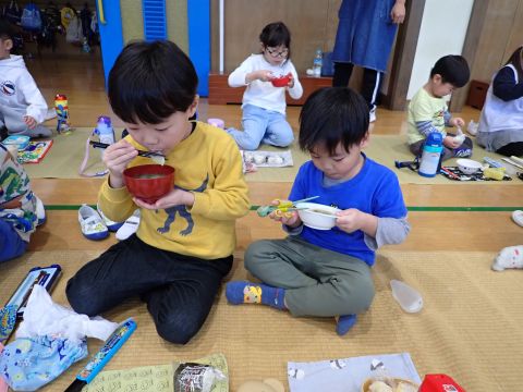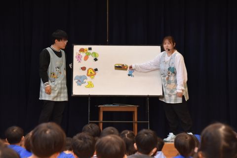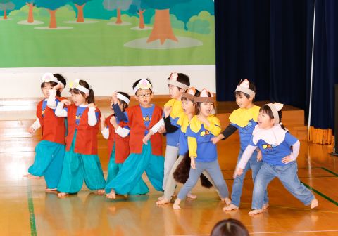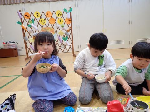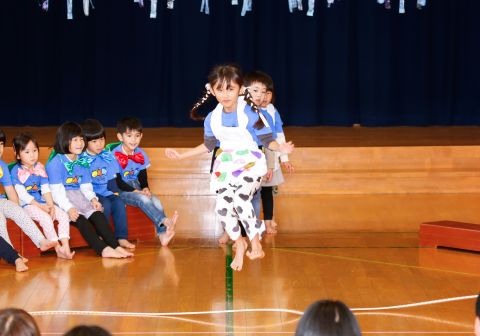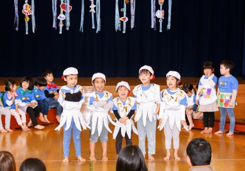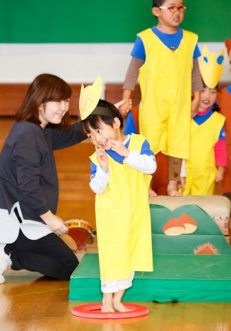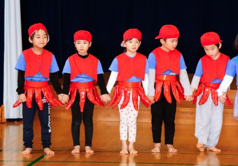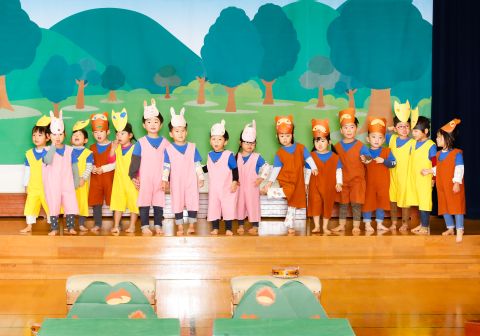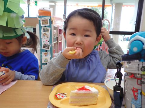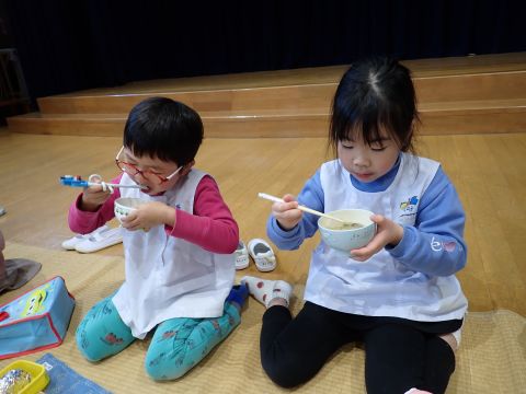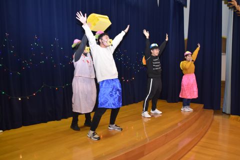 その後、園長先生から豆まきの由来の話を聞いたり、寸劇を観て楽しみました。
