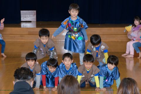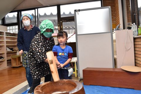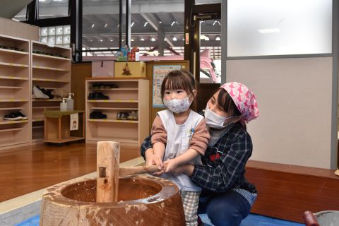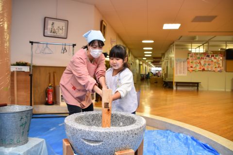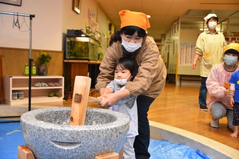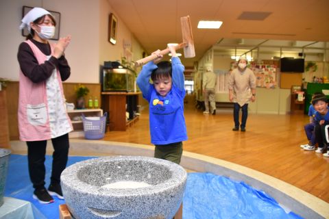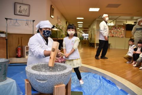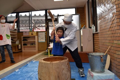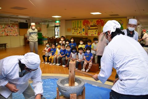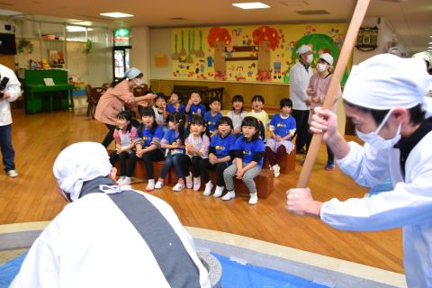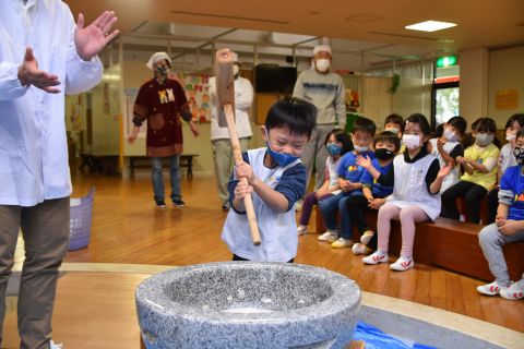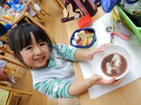 今日は、年長組の子どもたちが七草粥を食べました。
