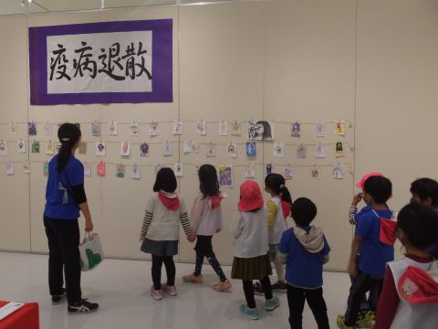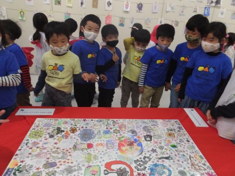 子どもたちが絵付けをして焼きあがった作品は1月に天満屋の窯元展で展示されました。