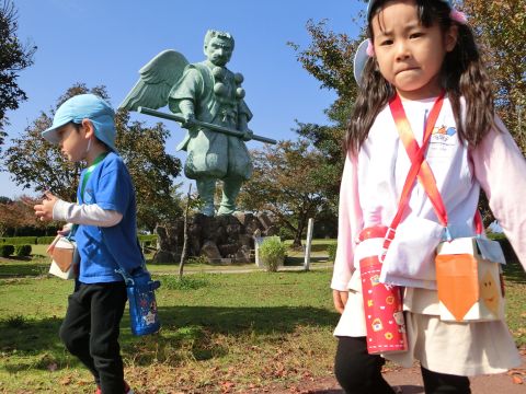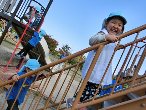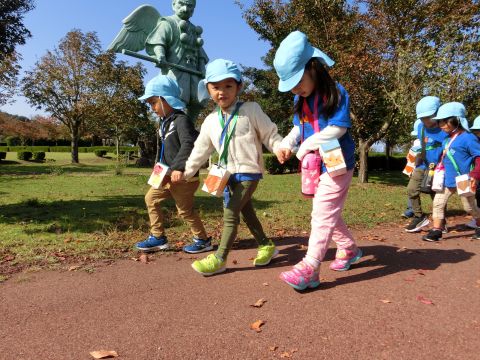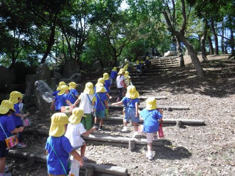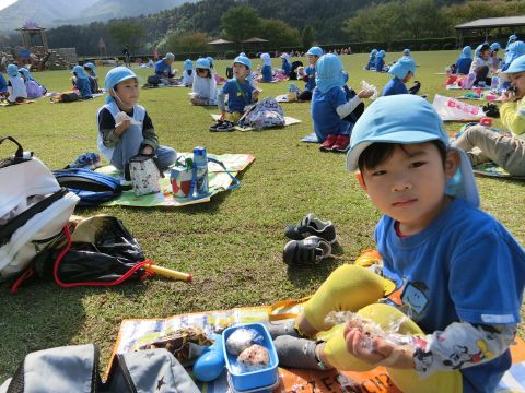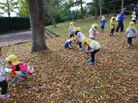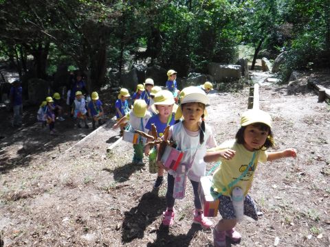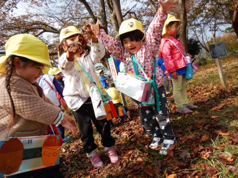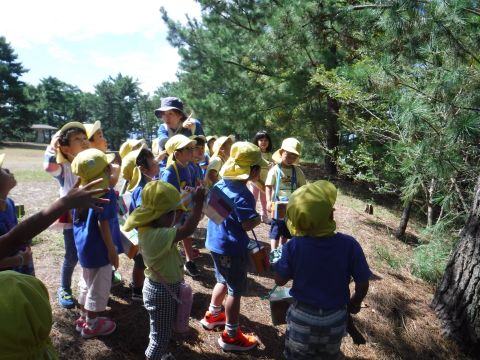 全園児が園の菜園で、クラス毎にサツマイモを収穫しました。