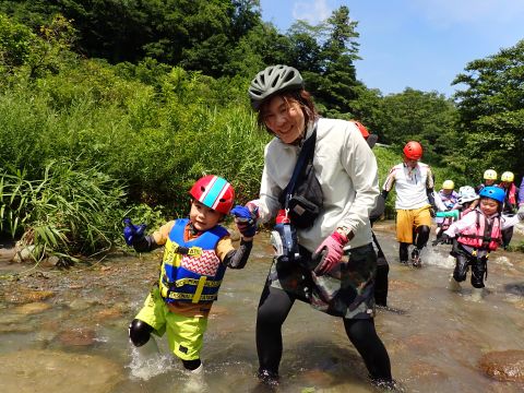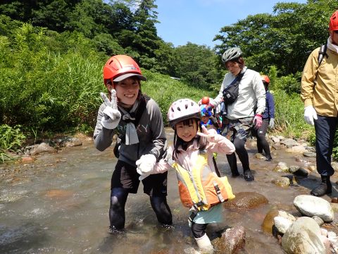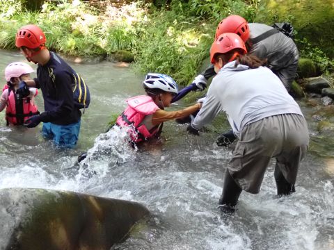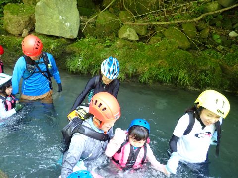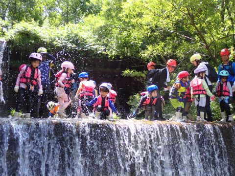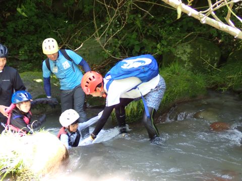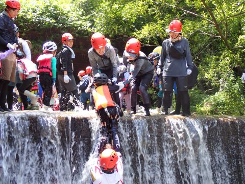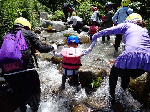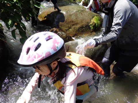 途中、深いところや流れが強い場所、滝などがあり、子どもたちは大興奮です♪
