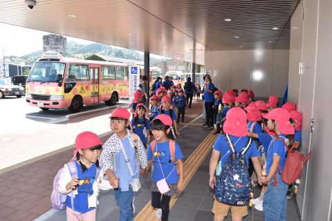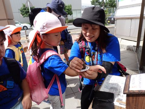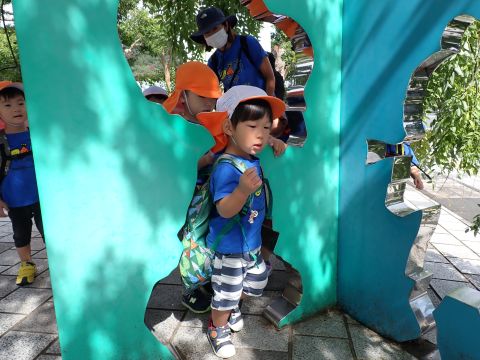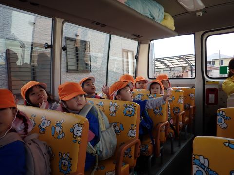 大好きなバスに友だちと乗れたのも楽しかったようで、バスから見える物を見つけると「みてみて!タンクローリー!!」「キリン(本池美術館)もいたよ」と大興奮で、一生懸命友だちや保育者に教えてくれる可愛い姿もありました。