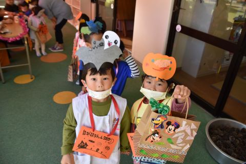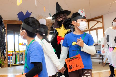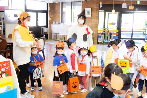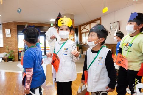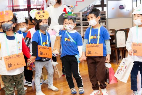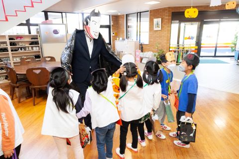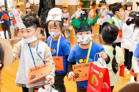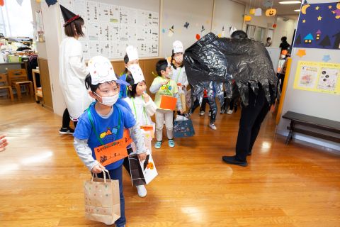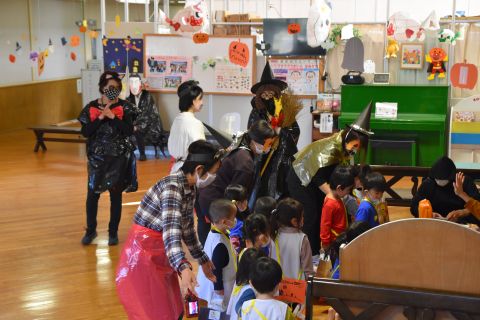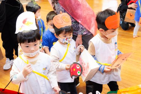最初に年長組の子どもたち扮する鬼が、ちいさい組の子どもたちの教室を回りました。