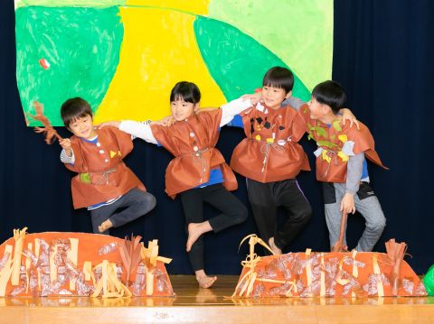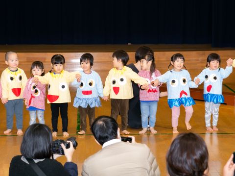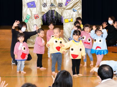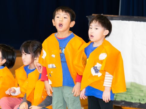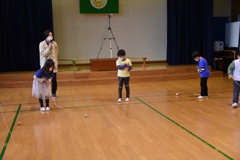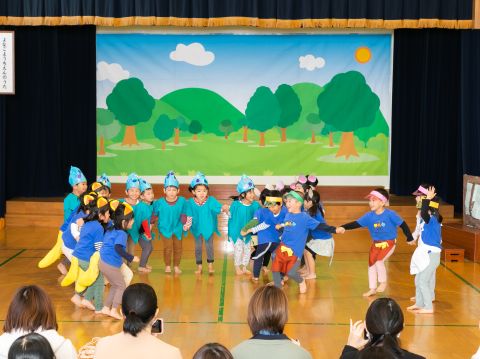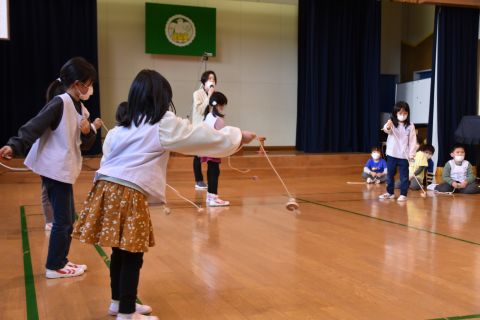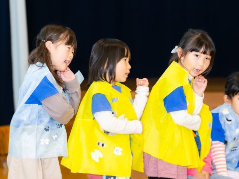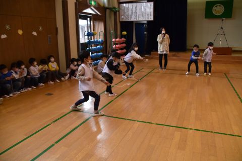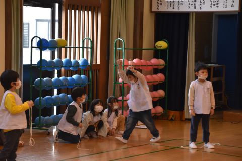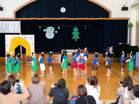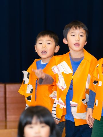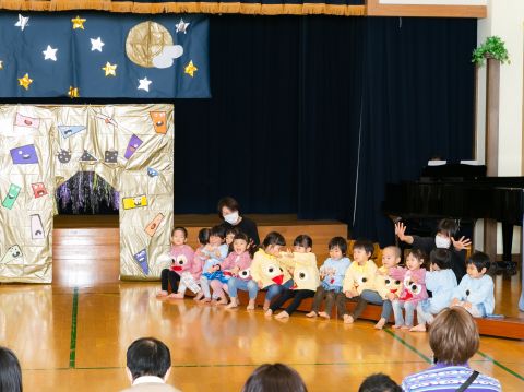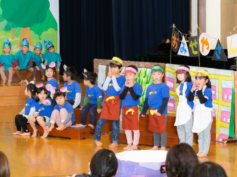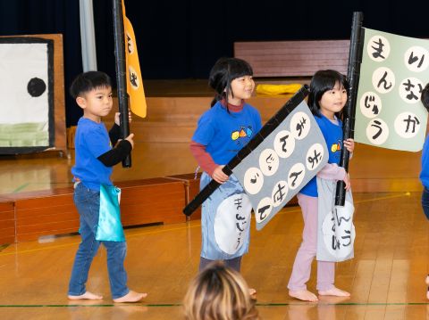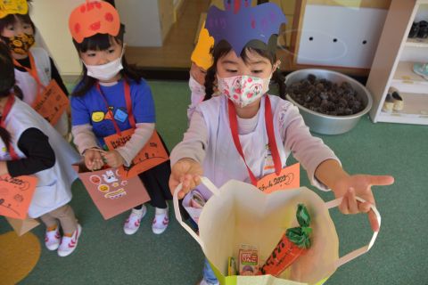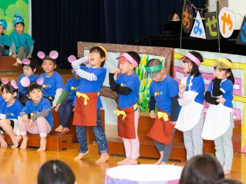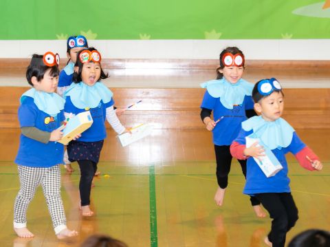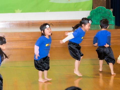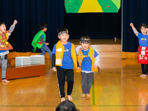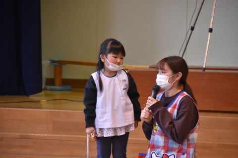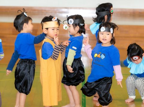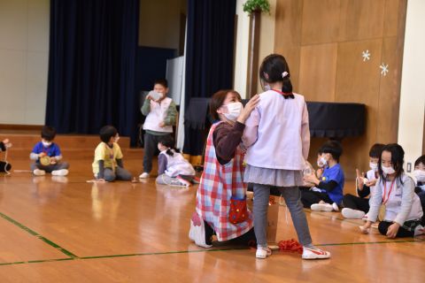 その後、園長先生から豆まきの由来の話を聞いたり、寸劇を観て楽しみました。
