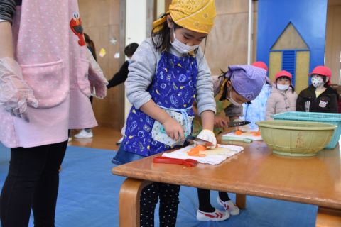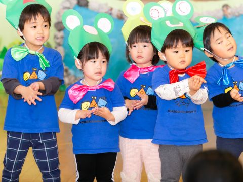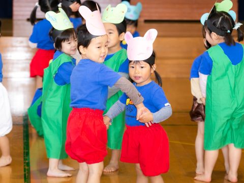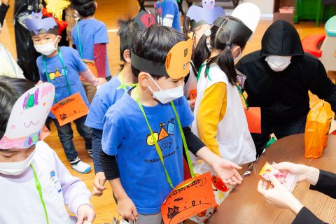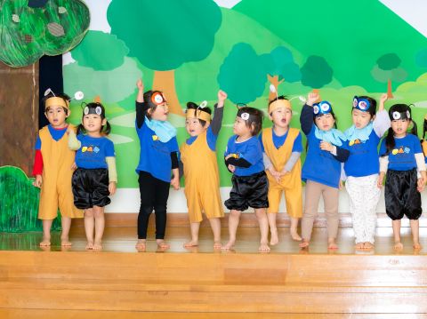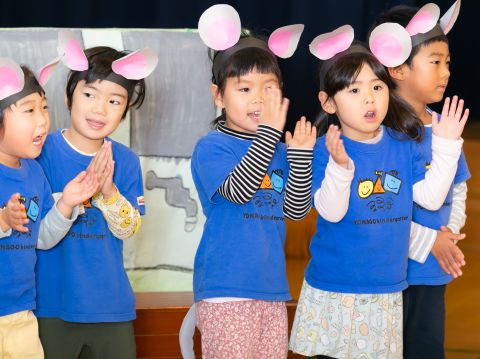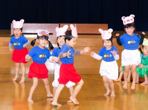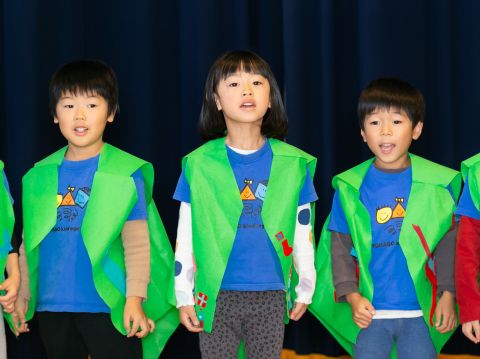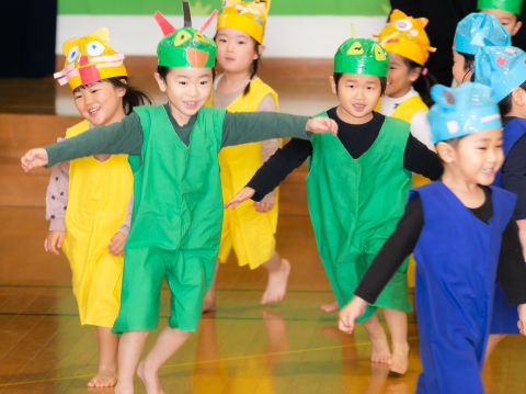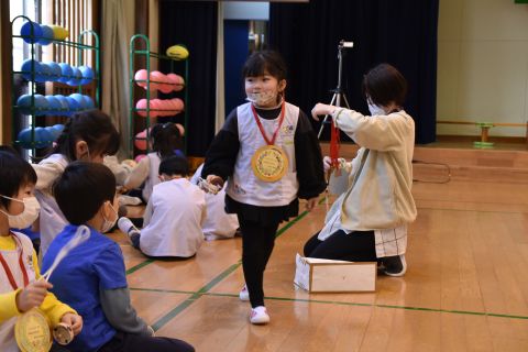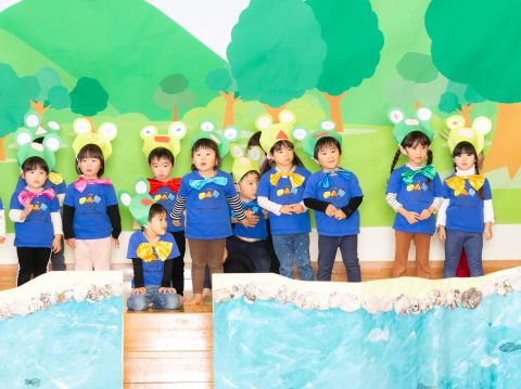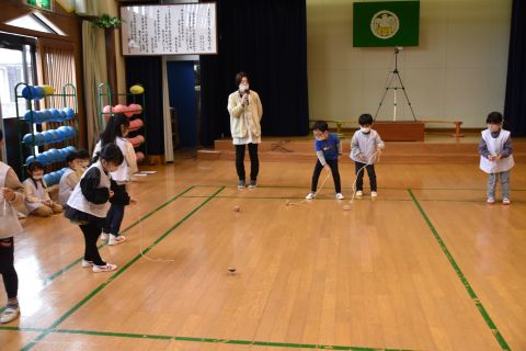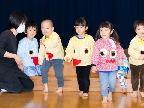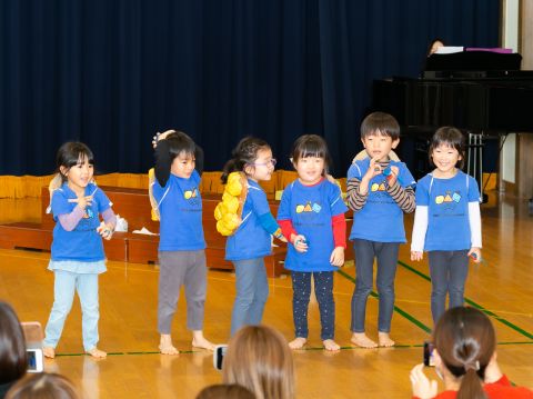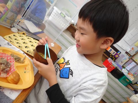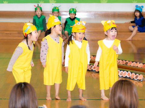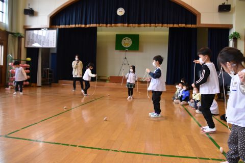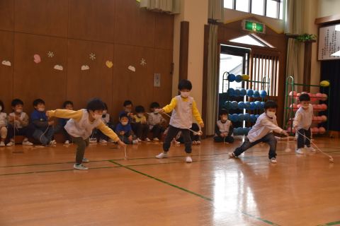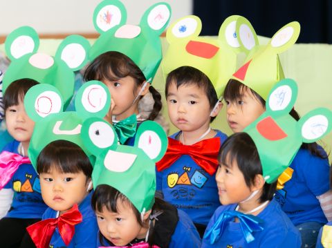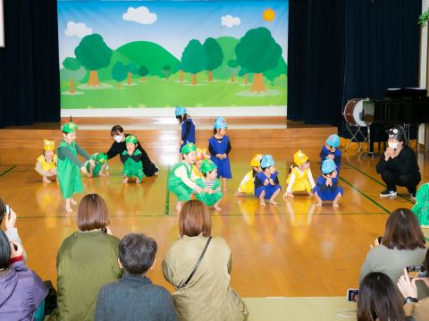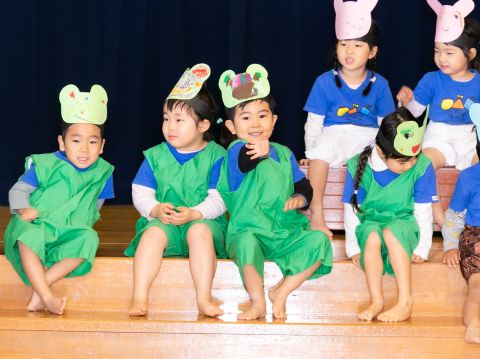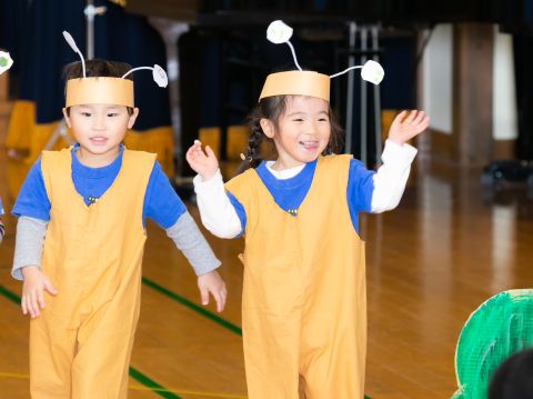 その後、園長先生から豆まきの由来の話を聞いたり、寸劇を観て楽しみました。