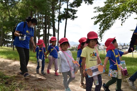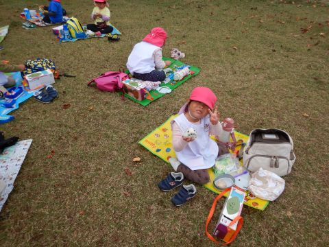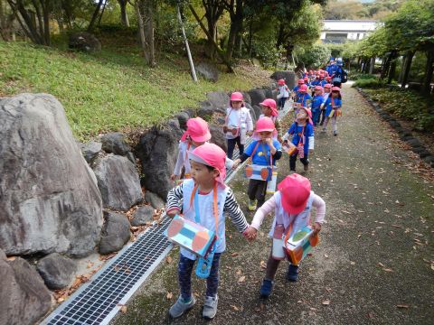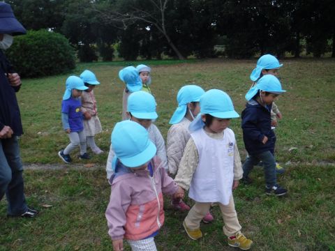 2歳児組の子どもたちが、中野公園に遠足にいきました。