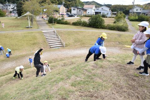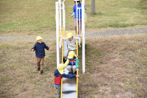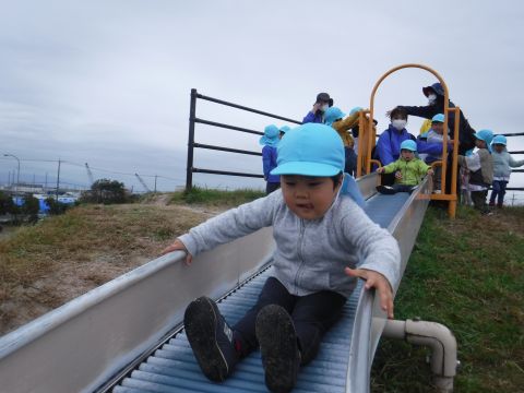 どんぐり拾いのあとは、長いローラーすべり台をすべっていっぱい遊びましたよ。