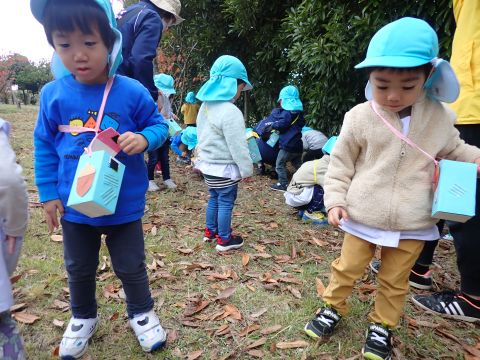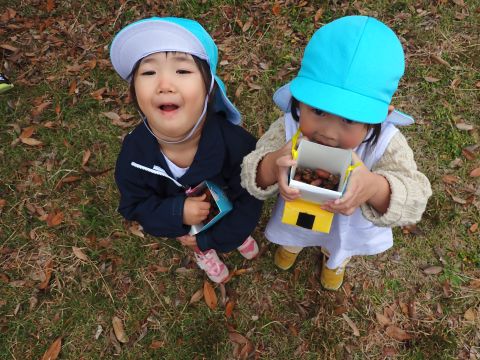 子供たちは、落ちているどんぐりを見て、目をきらきらさせて夢中で拾っていました♪