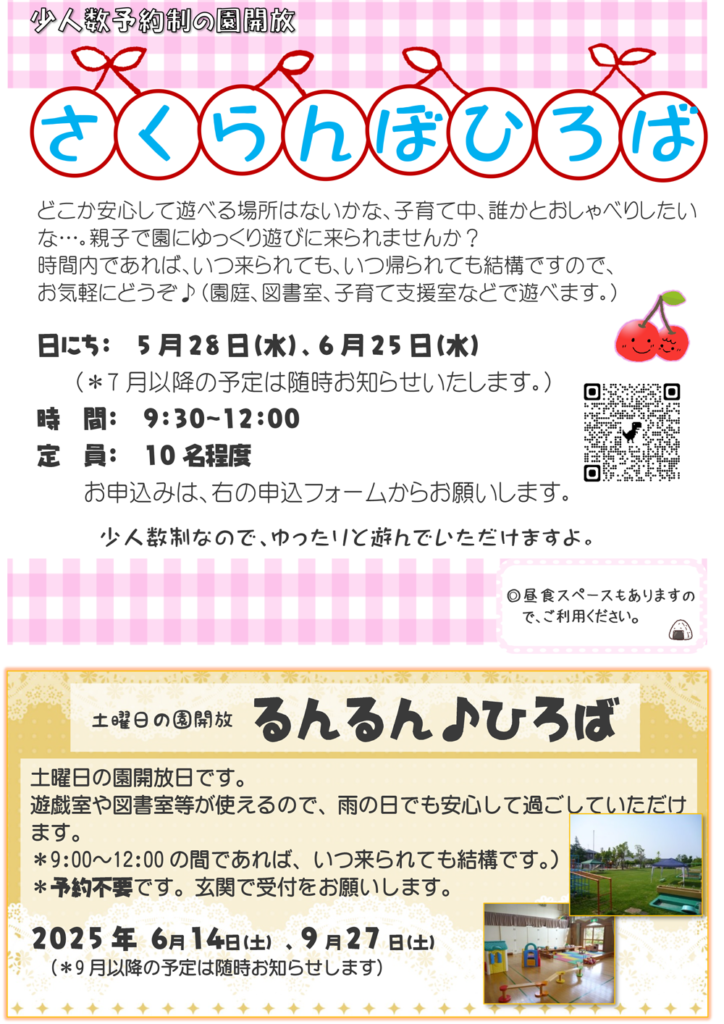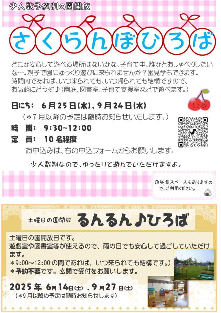 ・令和7年度 【園開放】さくらんぼひろば ・【園開放】るんるんひろば