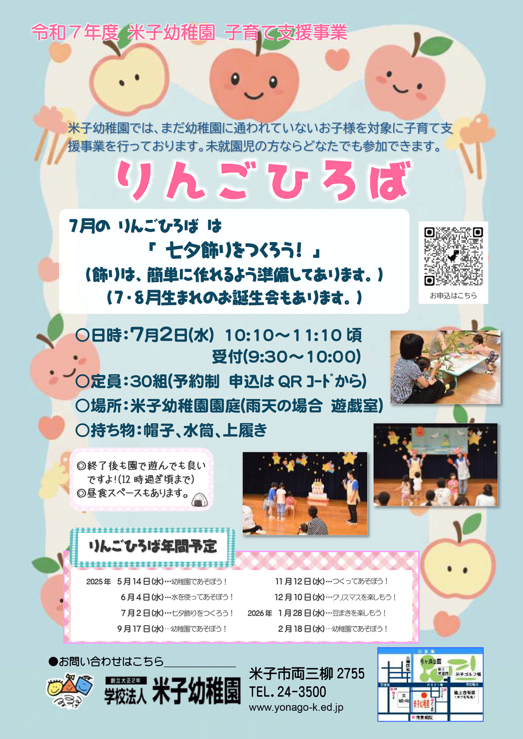 ※米子幼稚園への入園希望者が対象です。来年度以降に入園でもOKです。