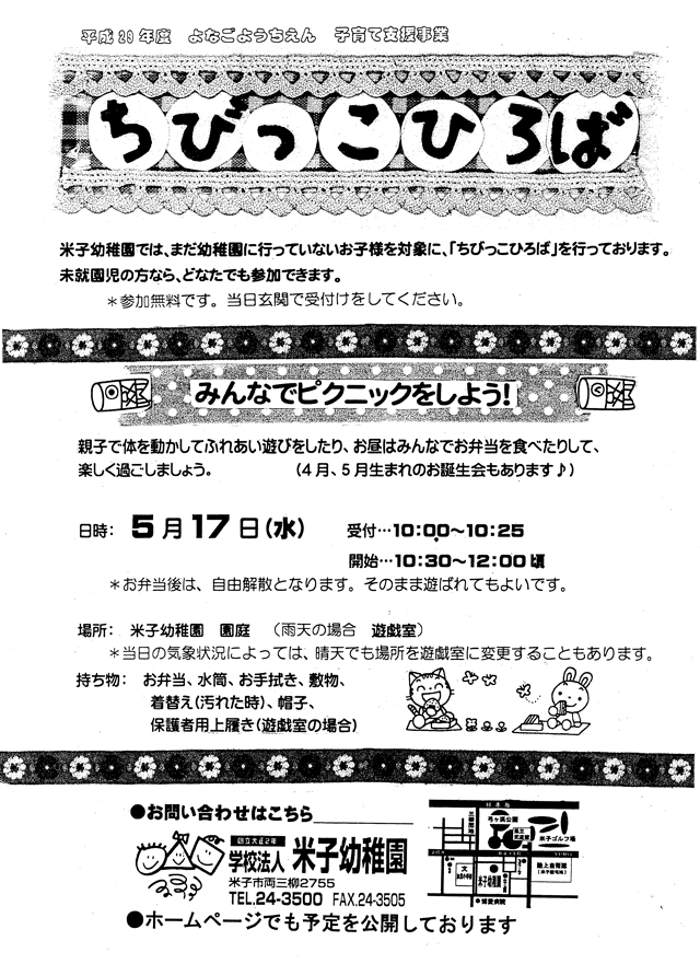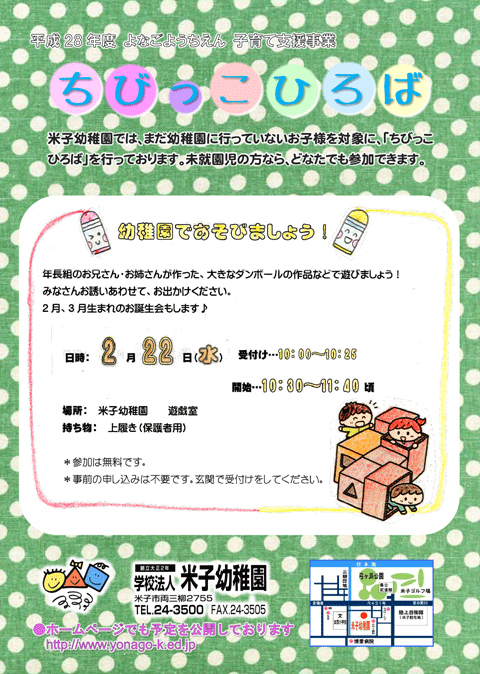 場 所:米子幼稚園 園庭 (雨天の場合は遊戯室)