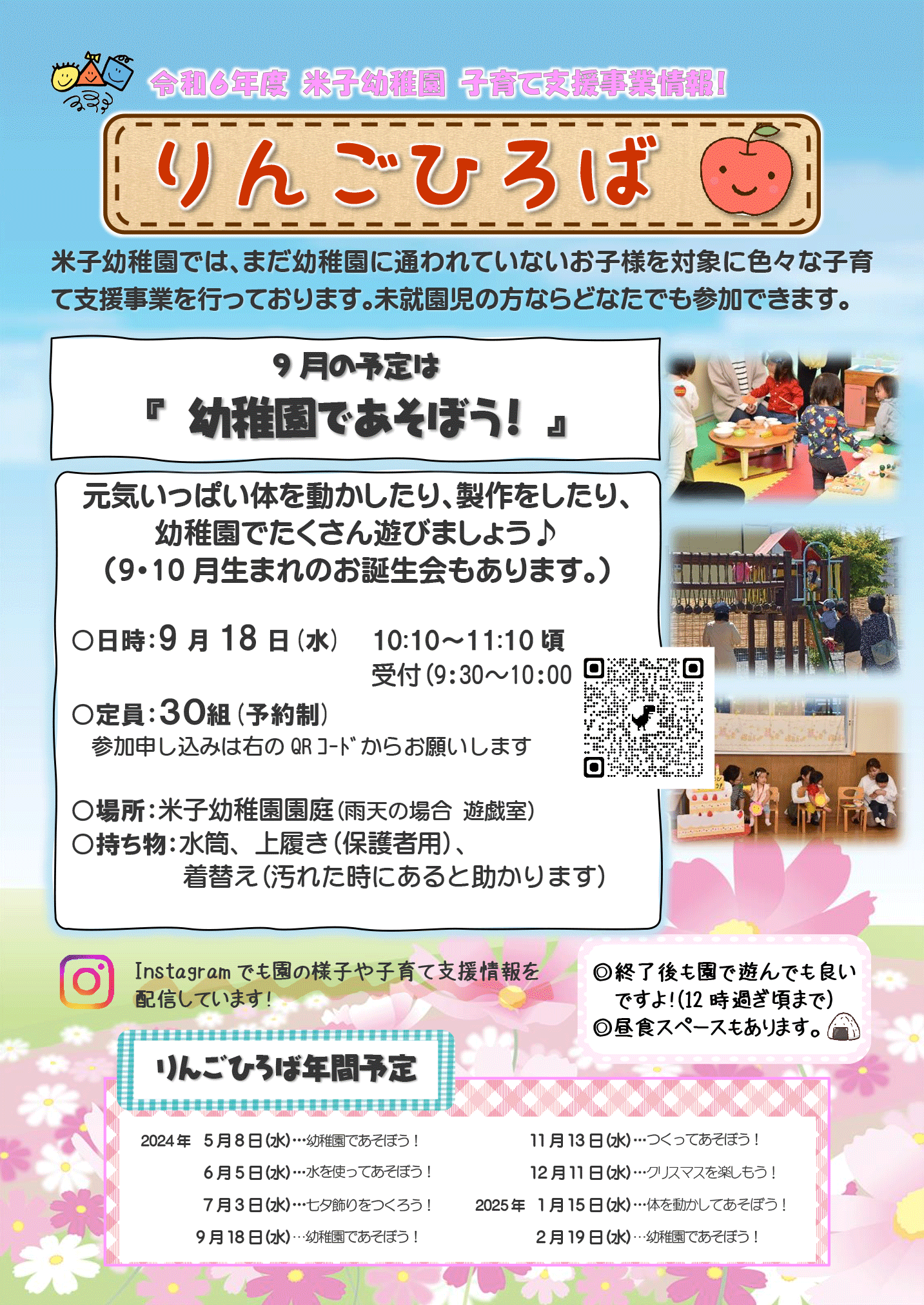 子育て支援事業 りんごひろば「幼稚園であそぼう! 」