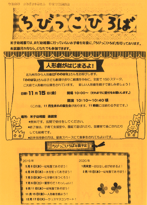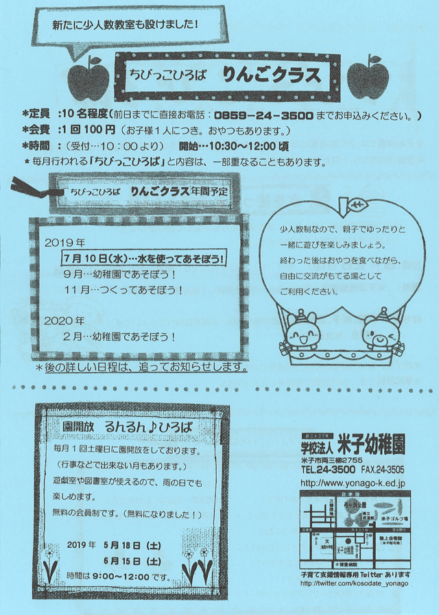 米子幼稚園では、まだ幼稚園に行っていないお子様を対象に、「ちびっこひろば」を行っております。未就園児の方なら、どなたでも参加できます。