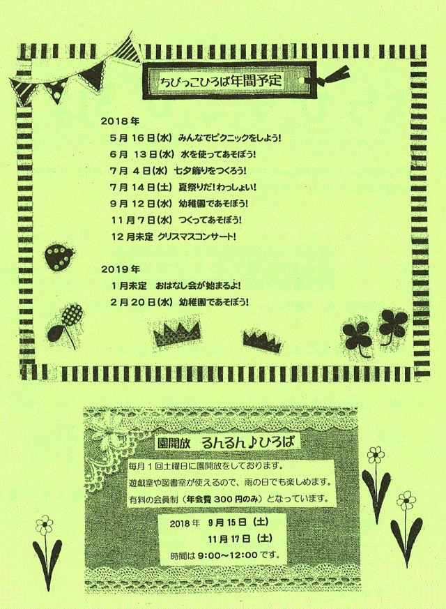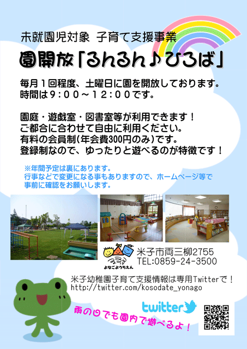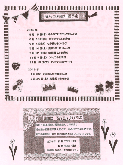 毎月1回程度、土曜日に園を開放しております。