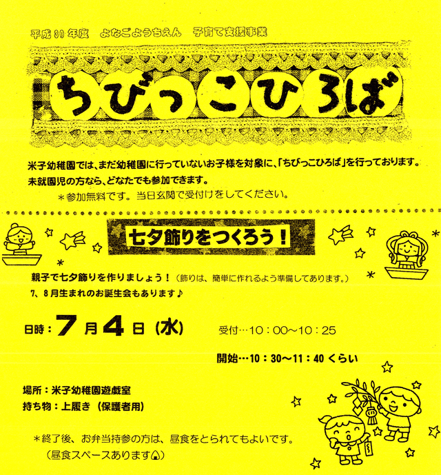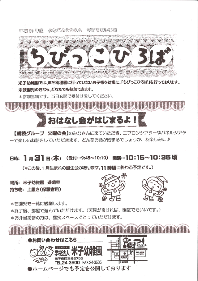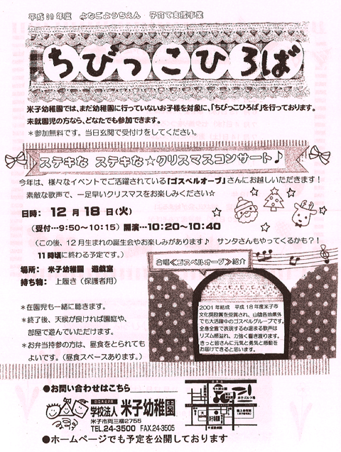 米子幼稚園では、まだ幼稚園に行っていないお子様を対象に、「ちびっこひろば」を行っております。未就園児の方なら、どなたでも参加できます。