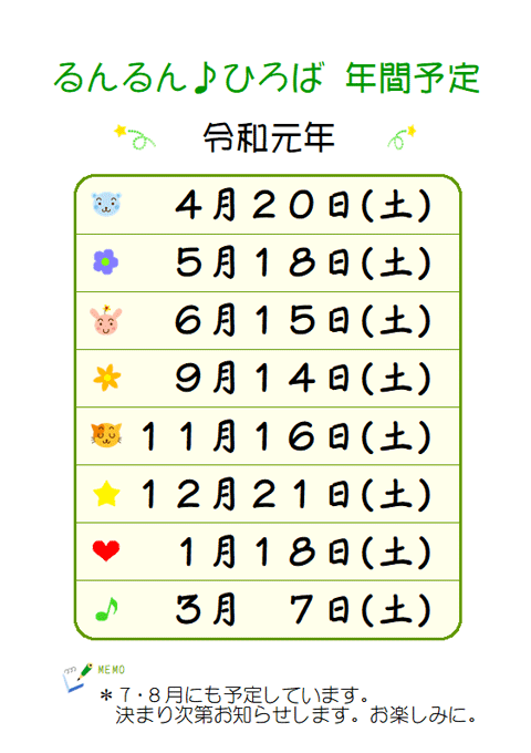 行事などで変更になる事もありますので、ホームページ等で事前に確認をお願いします。