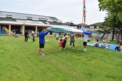 ○みんなで「こいのぼり」を歌ったり、「動物体操」をして体を動かしました! 年長組さんや、職場体験の加茂中学校のお兄さんたちもお手伝いしてくれました。