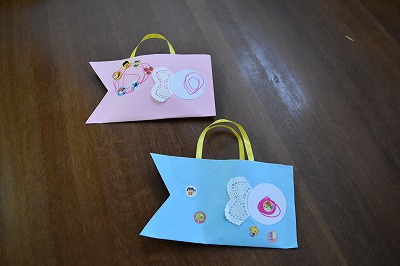 ○目をぐるぐる描いたり、シールを貼ったりして、可愛いこいのぼりバッグが出来ました!