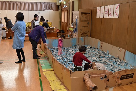その後で、よ~いどん!で、かけっこをしました!途中で布のトンネルをくぐってゴールです!ひらひら、大きくなったり、小さくなったりする布のトンネルに、ワクワクドキドキしながら、くぐって、みんな最後までがんばってゴールすることが出来ましたね♡