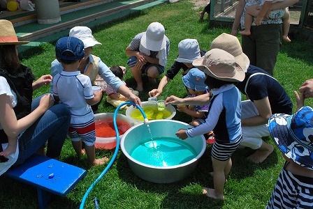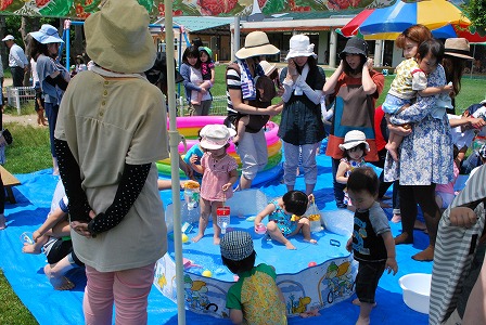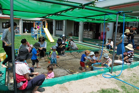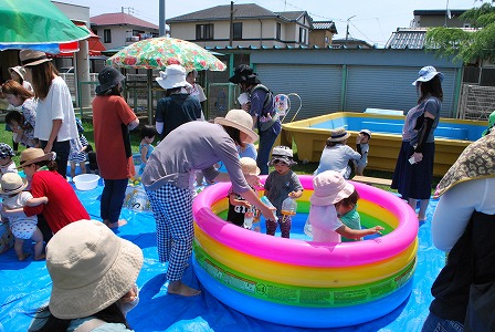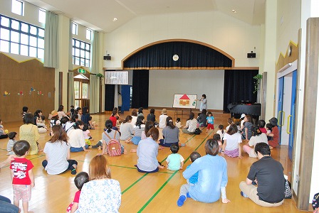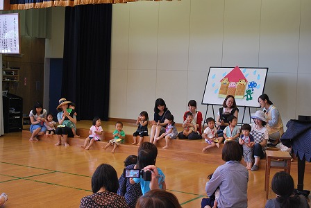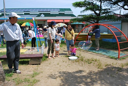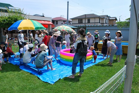 「雨が降るのでは…」と心配された天気でしたが、くもり空からだんだんお日様が出てきて、気持ちのいい天気になりました。今回は、47組の親子のみなさんが遊びに来てくださいました!