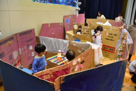 催し物:おみこし、園児による盆踊り、段ボール迷路、ボーリングゲーム、お菓子釣り等