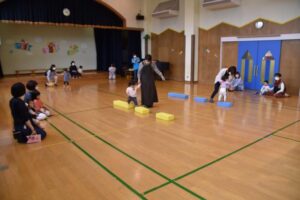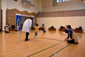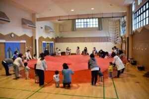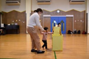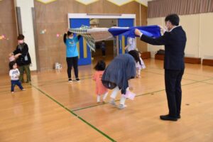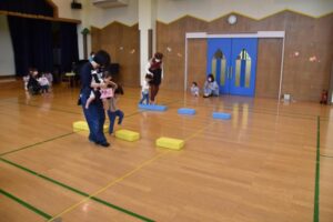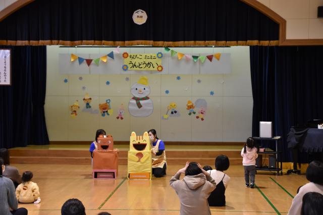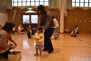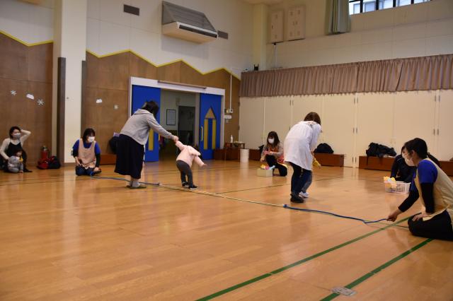 「お外は寒いけど、寒さに負けずに、みんなで元気に体を動かしてあそぼう!」ということで、ちびっこミニミニ運動会をしました!