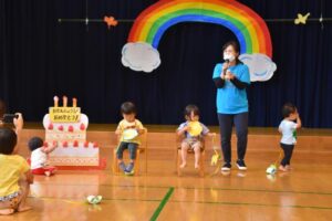 お誕生会ではみんなで歌をうたったり、拍手をしたりして、7月8月生まれのお友だちをお祝いしました♪