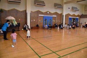 持ち物:水筒、帽子 (遊戯室の場合、保護者用上履き)