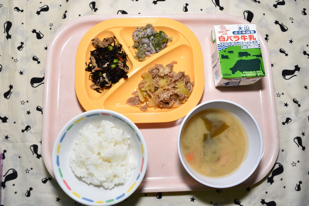 鉄分たっぷり☆ひじき煮☆(2020/01/10) 今日から給食の配膳が変わりました! ごはんは、茶碗に入れて手で持って食べやすくなりました。また、定期的に汁物もつけてもらえるようになりました。 ★ ごはん◆●焼き肉◆●ひじき煮● ゆかり和え★●じゃが芋みそ汁 ※あたたかいご飯・スープはおかわり自由です。※牛乳は年長希望者のみです。★熱や力になるもの ◆血や肉になるもの ●体の調子を整えるもの ツイート