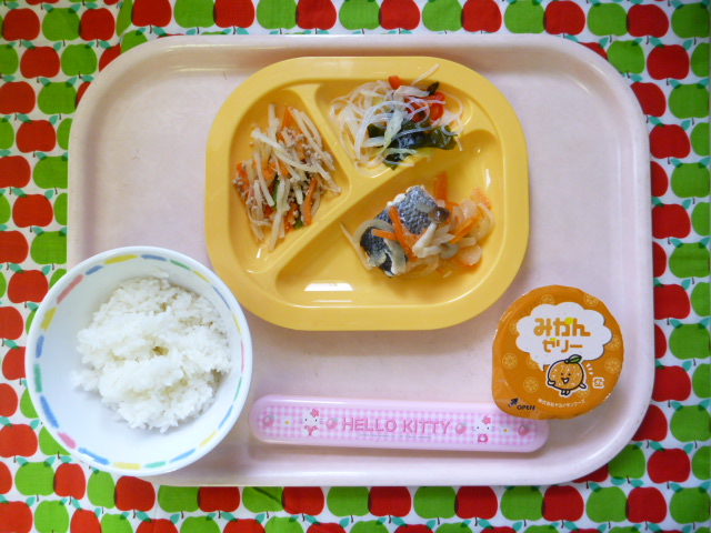 お酢のパワーで元気いっぱい!!(2020/04/21) ★ ごはん◆●鮭のちゃんちゃん焼き◆●たけのこきんぴら● 酢の物★ みかんゼリー ※あたたかいご飯はおかわり自由です。★熱や力になるもの ◆血や肉になるもの ●体の調子を整えるもの ツイート