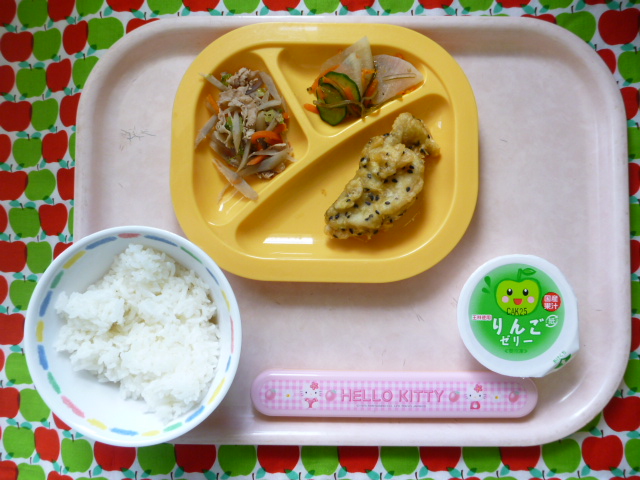 甘辛く煮たしぐれ煮(2020/04/24) ★ ごはん◆ タラの南部揚げ◆●牛しぐれ煮● 大根の塩昆布和え★ りんごゼリー ※あたたかいご飯はおかわり自由です。★熱や力になるもの ◆血や肉になるもの ●体の調子を整えるもの ツイート