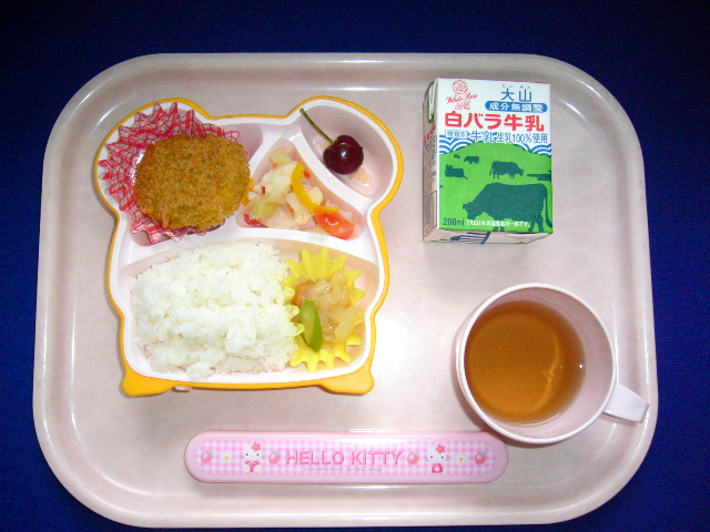 あまくて栄養たっぷりのコロッケ☆(2013/05/31) ★ ごはん ★●かぼちゃコロッケ ◆●ウィンナーとアスパラ炒め ● トマトサラダ ● チェリー ※あたたかいご飯はおかわり自由です。 ※牛乳は希望者のみです。 ★熱や力になるもの ◆血や肉になるもの ●体の調子を整えるもの ツイート