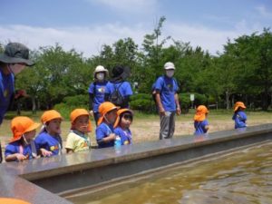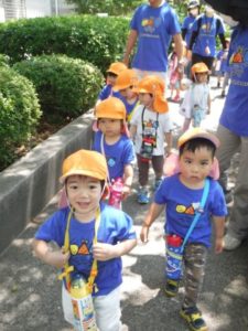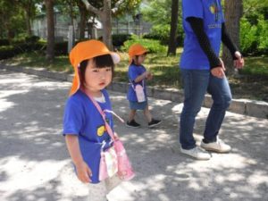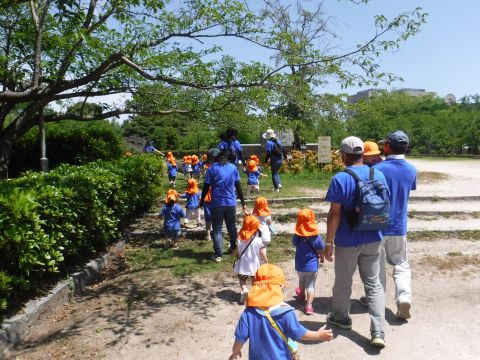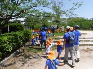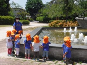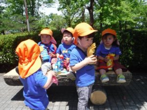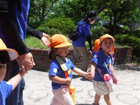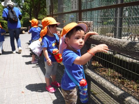 ひよこ組の子どもたちがバスに乗って湊山公園へ行きました。公園内をお散歩したり、お猿さんを眺めたり自然といっぱいふれあいました。