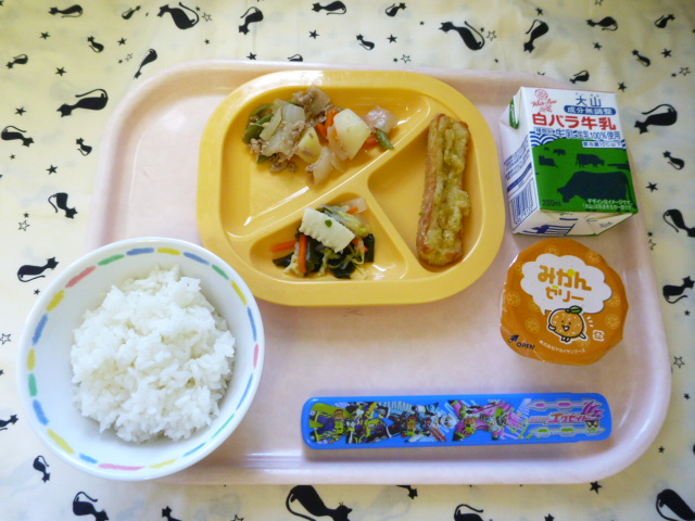 お酢のパワーで元気もりもり♪(2020/09/15) ★ ごはん★◆●肉じゃが◆ ちくわの磯辺天ぷら● 酢の物★ みかんゼリー ※あたたかいご飯は、おかわり自由です。※牛乳は年長希望者のみです。★熱や力になるもの ◆血や肉になるもの ●体の調子を整えるもの ツイート