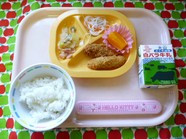 サクサクおいしい双子のエビフライ☆(2020/10/27) ★ ごはん◆ エビフライ◆● 白菜ベーコン煮◆● 春雨サラダ● オレンジ ※あたたかいご飯は、おかわり自由です。※牛乳は年長希望者のみです。★熱や力になるもの ◆血や肉になるもの ●体の調子を整えるもの ツイート