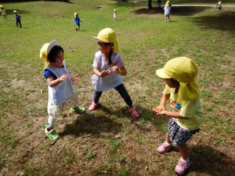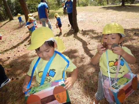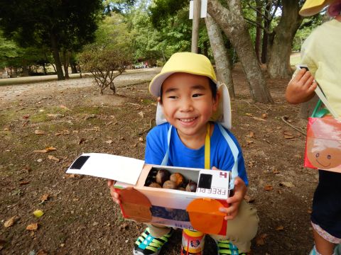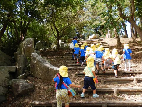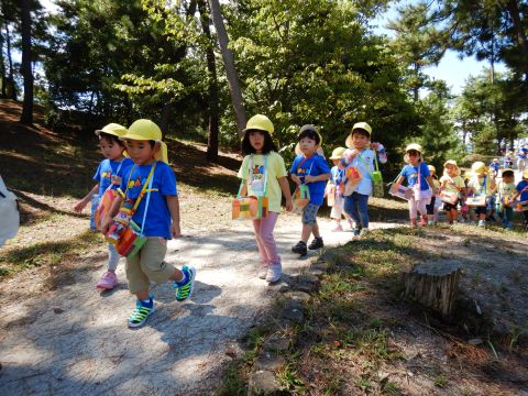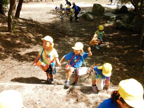 竜が山公園遠足(年少)(2020/09/15) 年少組の子どもたちが、竜が山公園に遠足に行きました。公園内の広場を散策した後は、小高い山に登って、探検を思いきり楽しみました。午後からも広場で思いきり体を動かして遊びましたが、まだまだ元気いっぱい、パワーあふれる年少組の子どもたちでした!また、まつぼっくりや、栃(トチ)の実などが落ちていて、“秋からの贈り物”をたくさん見つけることもできましたよ!秋の訪れを体いっぱいに感じながら楽しい一日を過ごしました。 ツイート