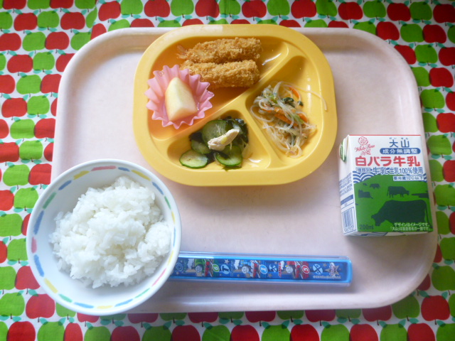 海藻はミネラルたっぷりだよ☆(2020/11/16) ★ ごはん◆ エビフライ◆● 春雨ソテー◆● 海藻サラダ● りんご ※あたたかいご飯は、おかわり自由です。※牛乳は年長希望者のみです。★熱や力になるもの ◆血や肉になるもの ●体の調子を整えるもの ツイート