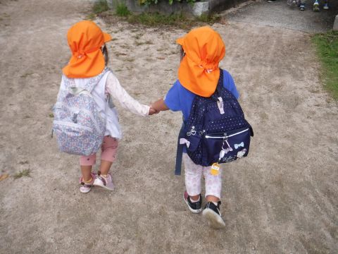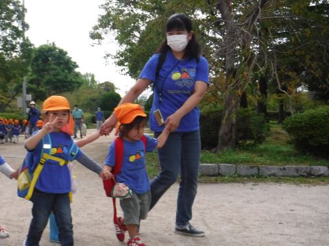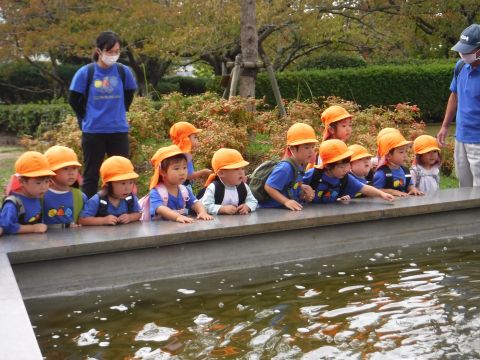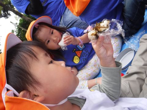 湊山公園遠足(ひよこ組)(2020/09/24) ひよこ組(2歳児クラス)の子どもたちが、湊山公園にバス遠足に行きました。1学期にも行きましたが、今回は、中海を眺めながら遊歩道を散策したり、遊具で遊んだりして楽しみました。公園内で葉っぱや木の実を見つけて大喜びの子どもたち!いろいろなものを発見するのが上手な、ひよこ組さんです。みんなで一緒に、公園でおにぎりやおやつを食べるって楽しいね!…と、もぐもぐタイムも大満足の様子でした。 ツイート