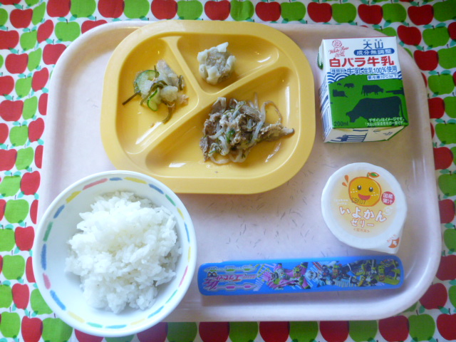 お肉と一緒にご飯も食べよう!(2020/11/17) ★ ごはん◆● 牛もやし炒め◆● 大根の塩昆布和え◆ シューマイ★ いよかんゼリー ※あたたかいご飯は、おかわり自由です。※牛乳は年長希望者のみです。★熱や力になるもの ◆血や肉になるもの ●体の調子を整えるもの ツイート