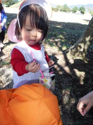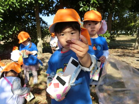 中野公園遠足(ひよこ組)(2020/11/5) ひよこ組の子どもたちが、境港の中野公園に、秋を見つけに行ってきました。この日はとても良い天気♪公園に着くなり勢いよく探し始め、ドングリや葉っぱなどを見つけては、嬉しそうに見せてくれる子どもたち!あっという間に、お散歩バッグがいっぱいに…。午前中の短い時間ではありましたが、思いきり楽しみましたよ! ツイート