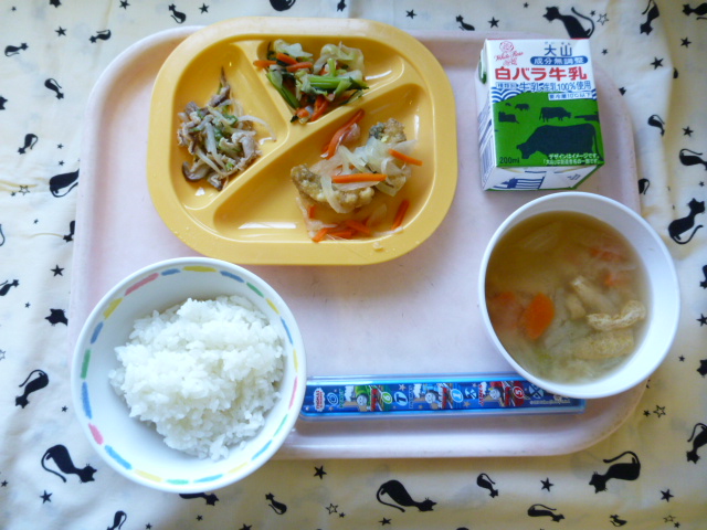残さず食べて丈夫な体を作ろう!(2020/12/09) ★ ごはん◆● アジの南蛮漬け◆● 牛もやし炒め● ごま和え★◆●じゃが芋みそ汁 ※あたたかいご飯は、おかわり自由です。※牛乳は年長希望者のみです。★熱や力になるもの ◆血や肉になるもの ●体の調子を整えるもの ツイート