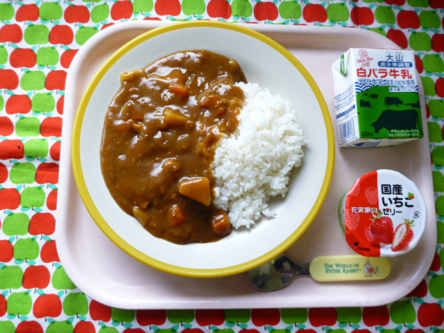 寒い日はあったかーいカレーだね☆(2020/12/21) ★ ごはん★◆●ポークカレー★ いちごゼリー ※あたたかいご飯・カレーはおかわり自由です。※牛乳は年長希望者のみです。★熱や力になるもの ◆血や肉になるもの ●体の調子を整えるもの ツイート