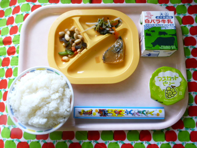 甘辛の味噌がしみしみ♪お魚さん☆(2021/01/15) ★ ごはん◆ サバの味噌煮◆● 五目煮豆● ナムル★ マスカットゼリー ※あたたかいご飯はおかわり自由です。※牛乳は年長希望者のみです。★熱や力になるもの ◆血や肉になるもの ●体の調子を整えるもの ツイート