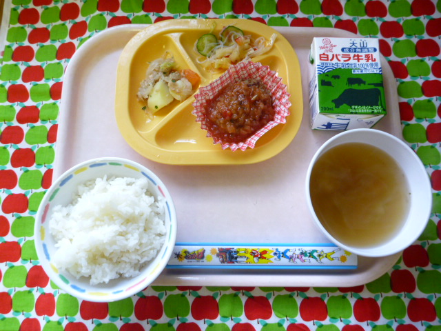 お弁当の定番☆ハンバーグだ♪(2021/01/13) ★ ごはん◆● ハンバーグトマトソース★◆●ツナじゃが● 春雨サラダ● コンソメスープ ※あたたかいご飯とスープは、おかわり自由です。※牛乳は年長希望者のみです。★熱や力になるもの ◆血や肉になるもの ●体の調子を整えるもの ツイート