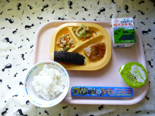 「畑の肉」といわれる大豆の煮物だよ(2021/02/03) ★ ごはん かっぱ巻き(節分の特別メニュー)◆ 煮魚◆● 五目煮豆◆● キャベツの塩昆布和え★ マスカットゼリー ※あたたかいご飯はおかわり自由です。※牛乳は年長希望者のみです。★熱や力になるもの ◆血や肉になるもの ●体の調子を整えるもの ツイート