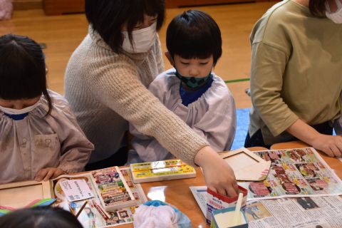 親子お楽しみ会(年長)(2021/02/26) 今日はお父さんやお母さんと一緒に写真たてを作りました。親子で一緒に参加できて、子どもたちはとっても嬉しそうで、笑顔がいっぱいのお楽しみ会になりました。作品が完成したら、親子で記念撮影をしました。素敵な作品と思い出ができましたね。 ツイート