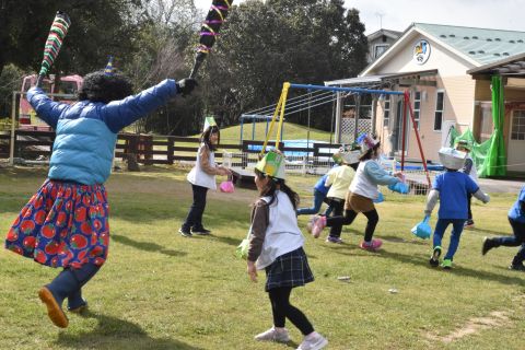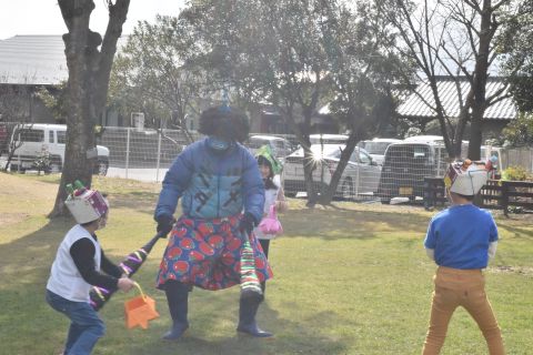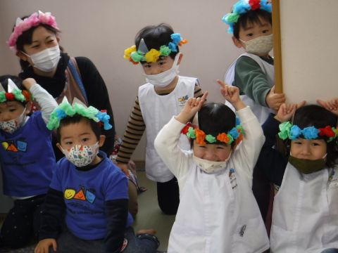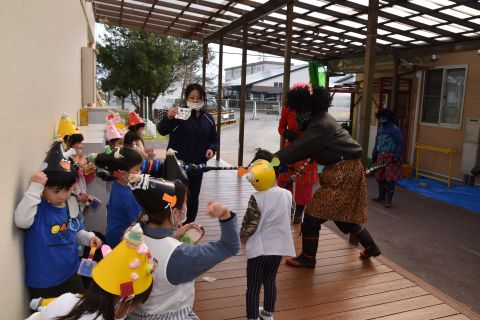 その後、園長先生から豆まきの由来の話を聞いたり、寸劇を観て楽しみました。